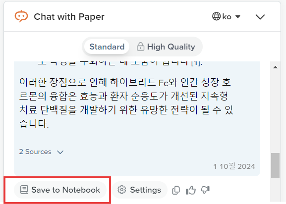 그리고 Chat with PDF 에서 마음에 드는 답변 말풍선에 있는 [Save to Notebook] 을 클릭하면 아카이빙 완료!